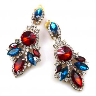 Superb huge rhinestone bib set with clips on earrings. Length of necklace 38 cm (15.00") and extension 6.5 cm (2.50"), center piece 9.5 cm (3.75"), earrings with clips 9 cm (3.50")