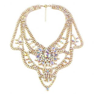 Wonderful clear crystal aurora borealis bib necklace, length 39.5 cm (15.50") and extension 6.5 cm (2.50")