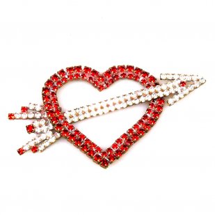 Red and clear crystal rhinestone St. Valentine pin, size 8.0 cm (3.20") x 5.0 cm (2.00")