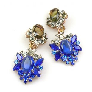 Aztec Sun Earrings Clips ~ Blue with Black Diamond
