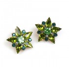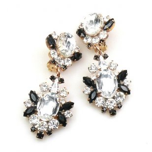 Aztec Sun Earrings Clips ~ Clear Crystal with Black