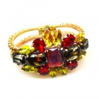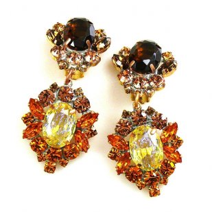 Aztec Sun Earrings Clips ~ Topaz Tones with Silver Yellow