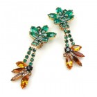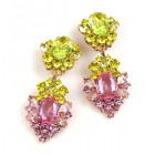 Aztec Sun Earrings Pierced ~ Topaz Tones with Silver Fuchsia