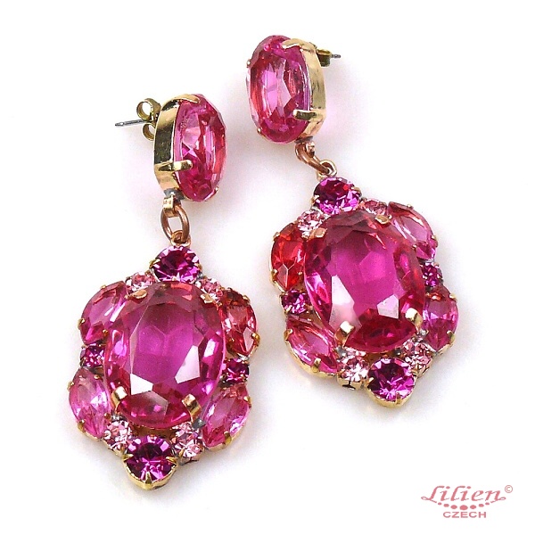 Wonderful rhinestone Bohemia crystal earrings for pierced ears, length 6.8 cm (2.70")