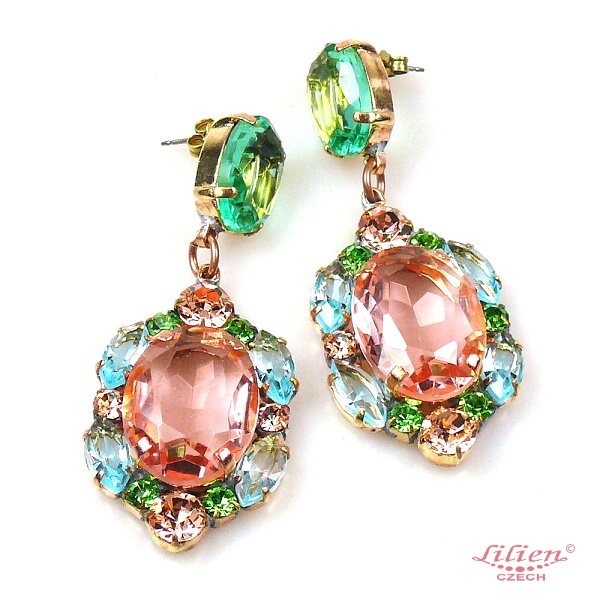 Wonderful rhinestone Bohemia crystal earrings for pierced ears, length 6.8 cm (2.70")