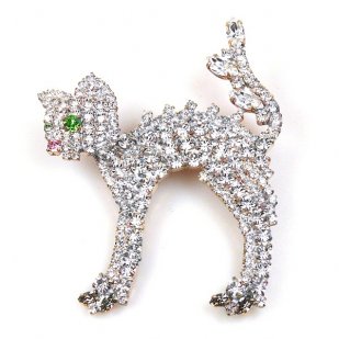 Wonderful bristled crystal cat pin, size 8.5 cm (3.25") x 6.5 cm (2.60")