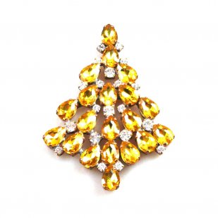 Brooch Teardrops Tree 7cm ~ Yellow Clear*