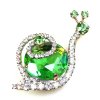 Snail Pin ~ Green*Snail brooch, large round center rhinestone and clear crystal chains, size 5 cm (2.00") x 5 cm (1.90") |