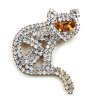 Arched Cat Pin ~ Clear Crystal*Wonderful clear crystal cat pin, size 8.0 cm (3.20") x 5.0 cm (2.00") |