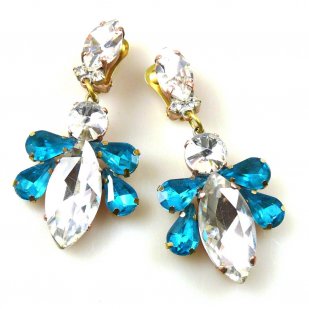 Carmen Earrings Clips ~ Clear Crystal with Aqua*
