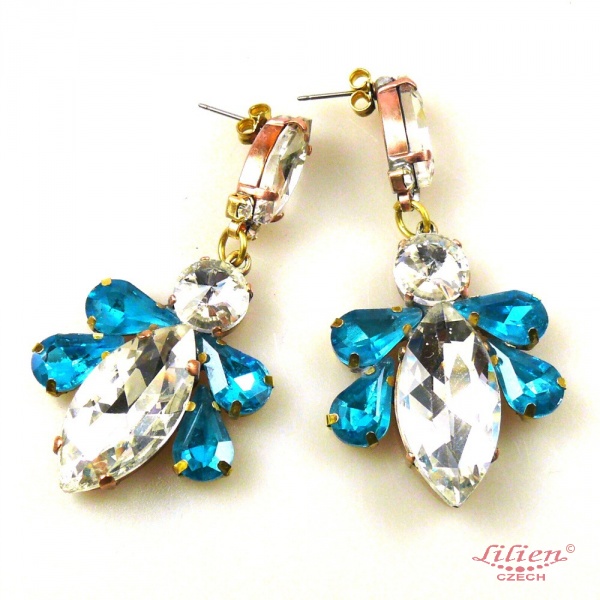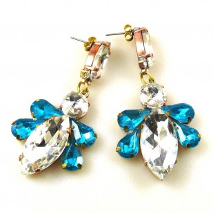 Carmen Earrings Pierced ~ Clear with Aqua*