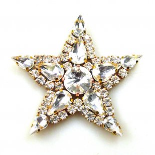 Wonderful Xmas Star clear crystal pin, size 6.0 cm (2.50")