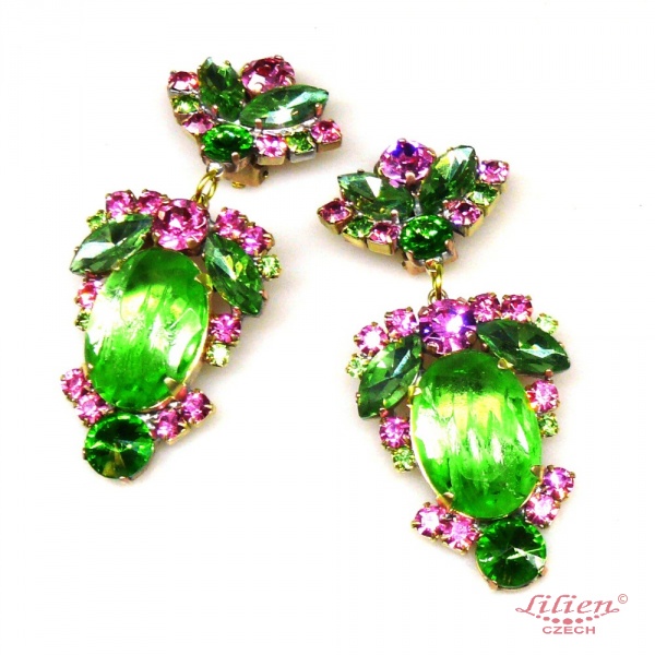 Déjà vu Clips Earrings ~ Extra Green with Pink*