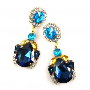 Dramatic Earrings Pierced ~ Montana Blue with Aqua*
