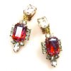 Alchemy Glam Earrings Clips ~ Extra Red Emerald Clear*Longer dangling rhinestone earrings with clips, length 7.5 cm (3.00") |