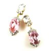 Gallery Earrings Clips ~ Pink Clear*Marvelous rhinestone long dangling earrings, length 8,0 cm (3.20") |
