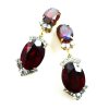 Alchemy Glam Earrings Clips ~ Extra Violet Topaz Red*Longer dangling rhinestone earrings with clips, length 7.5 cm (3.00") |