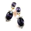 Alchemy Glam Earrings Clips ~ Extra Silver Black Violet*Longer dangling rhinestone earrings with clips, length 7.5 cm (3.00") |
