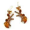Ants Earrings Pierced ~ TopazRhinestone earrings for pierced ears, length 4 cm (1.55") |