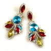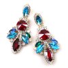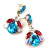 Beaute Earrings Pierced ~ Aqua with Red*Breath taking long rhinestone earrings for pierced ears, length 6.0 cm (2.40") |