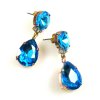 Droplets Earrings Pierced ~ Aqua*Elegant rhinestone earrings for pierced ears, size 3.8 cm (1.50") |