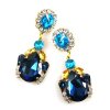 Dramatic Earrings Pierced ~ Sapphire Blue with Clear*Multicolor rhinestone earrings for pierced ears, length of earrings 6.5 cm (2.60") |