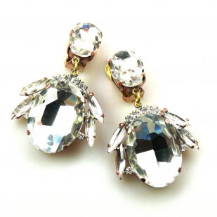 Breathtaking clear rhinestone earrings with clips, length 6,0 cm (2.4")