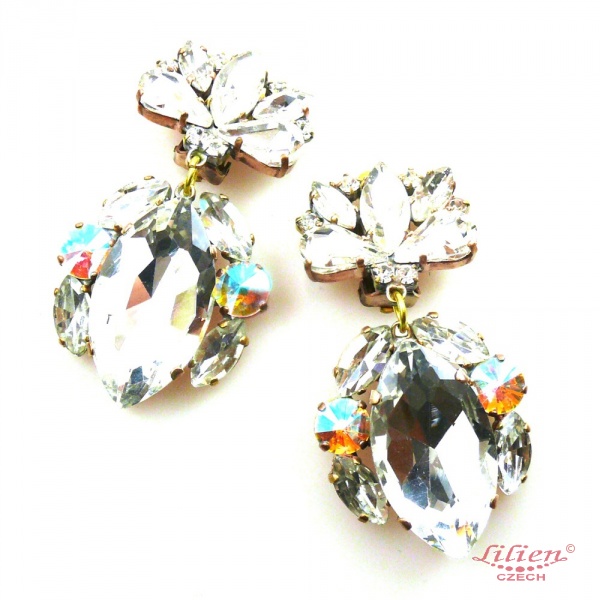 Unique earrings with clips designed from Preciosa Czech rhinestones, length 6.0 cm (2.40")