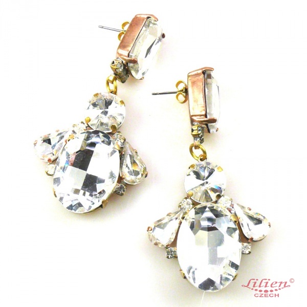 Lovely dangling rhinestone earrings created from hand made rhinestones. Length of earrings for piareced ears 6.7 cm (2.65")