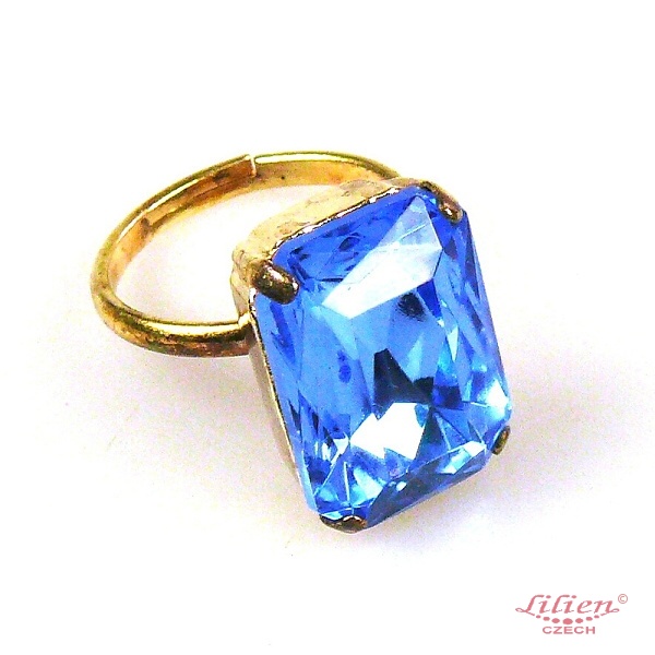 Ring with rectangular rhinestone, size adjustable, size of rhinestone 1.8 cm (0.70") x 1.3 cm (0.50")