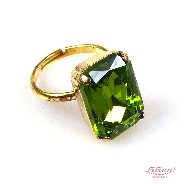 Ring with rectangular rhinestone, size adjustable, size of rhinestone 1.8 cm (0.70") x 1.3 cm (0.50")