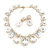 Effervescence Necklace Set ~ Clear CrystalFabulous Czech costume jewelry set, length 40.5 cm (16.00") and extender 6.5 cm (2.50"), earrings with clips 5.5 cm (2.15") |