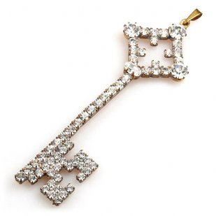 Clear Crystal Key of Heaven pendant, size 7.5 cm (3.00") x 2.5 cm (1.05")