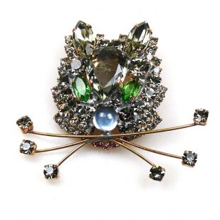 Nice rhinestone brooch Kitty, size 5 cm (2.00") x 7 cm (2.75")