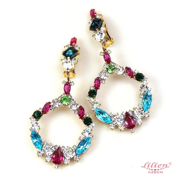 Wonderful big circle dangling earrings clips-on, length 10 cm (4.00")