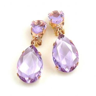 Two pears shape rhinestone earrings, open back setting, length 6.5 cm (2.50")