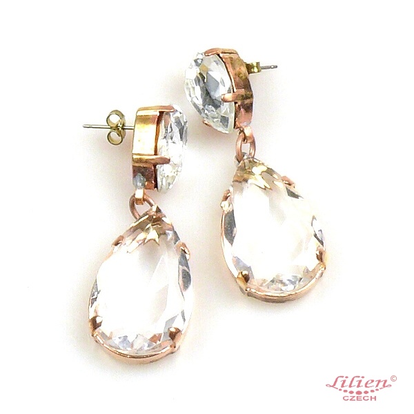 Two pears shape rhinestone earrings, open back setting, length 6.5 cm (2.50")