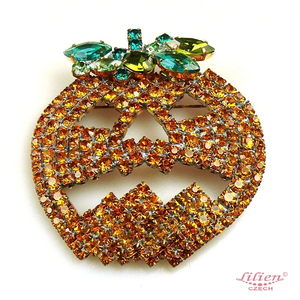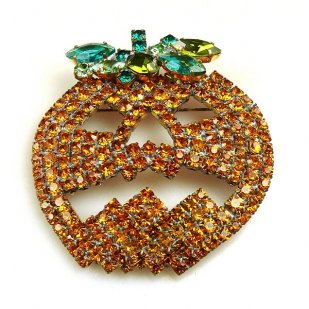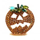 Exquisite Pumpkin Jack-O-Lanterns rhinestone brooch for Halloween holiday, size 7.5 cm (3.00") x 6.5 cm (2.65")