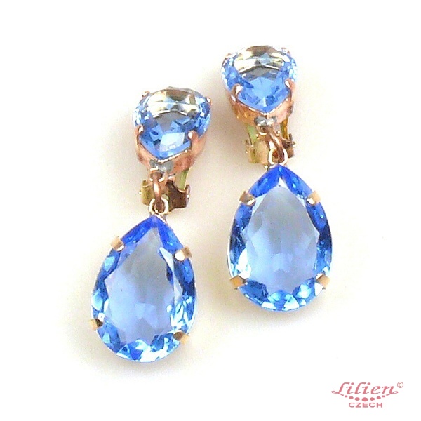 Raindrops Earrings Clips ~ Light Sapphire