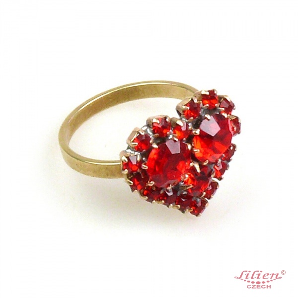 Ruby red color heart ring for St. Valentine day occasion, size of heart 2 cm (0.70"), ring size 18mm