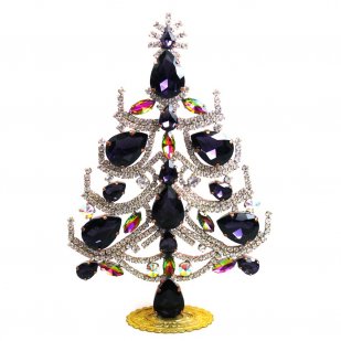 Spectacular multicolor Xmas Tree decoration, used Czech crystal glass rhinestones, height 18 cm (7.00"), width 11.5 cm (4.50")