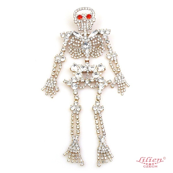 Unique skeleton clear crystal brooch, size 16.5 cm (6.50")