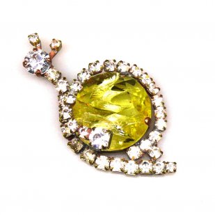 Snail brooch, large round center rhinestone and clear crystal chains, size 5 cm (2.00") x 5 cm (1.90")