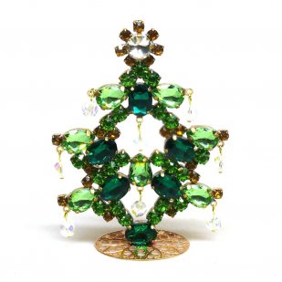 Gorgeous Xmas Tree stand up decoration in hearts shape decorated with crystal glass dangling beads, size 10.0 cm (4.50")