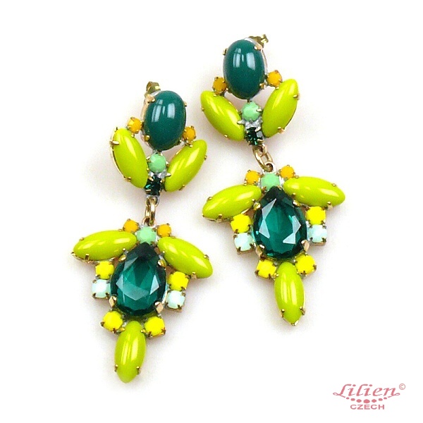 Amazing earrings for pierced ears made from opaque glass stones, length 7.5 cm (3.00")