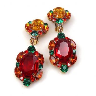 Wonderful rhinestone Bohemia crystal earrings with clips, length 6.8 cm (2.70")