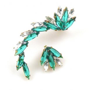 Twist ~ Asymmetric Earrings for Pierced Ears ~ Emerald Clear (R)