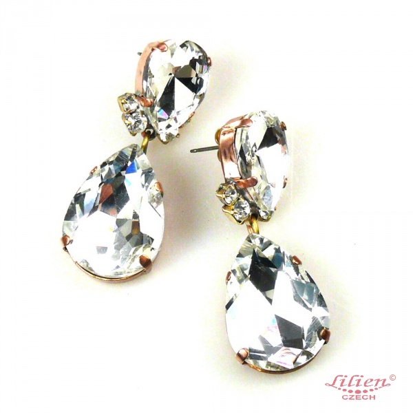 Two Drops Earrings Pierced ~ Clear Crystal*