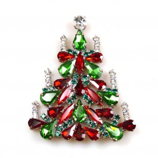 Xmas Tree Brooch #03 ~ Green Red Clear*