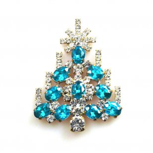 Xmas Tree Brooch #05 ~ Aqua Clear*